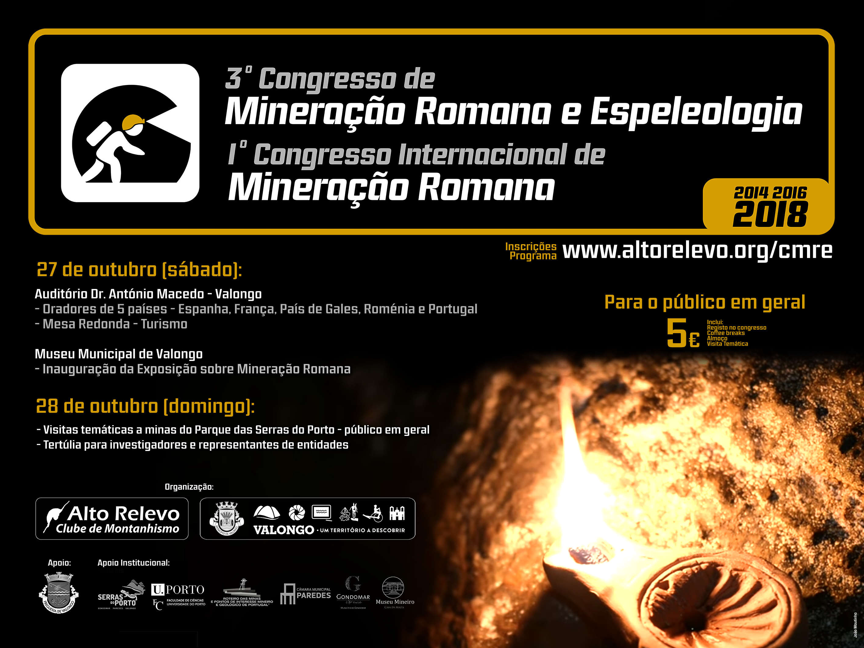 O ARCM, fazendo parte do grupo técnico relativo à mineração romana, não poderia deixar de colaborar com uma pequena atividade que consiste numa experimentação de bateia, atiivade esta com a colaboração da Faculdade de Cièncias da Universidade do Porto, acompanhamento em alguns troços de caminhada e de uma “introdução” sobre a mineração numa cavidade em Valongo.